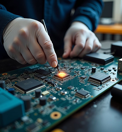 We diagnose and repair damaged PCBs at component level, replacing faulty ICs, capacitors, resistors, and connectors to restore full circuit functionality.